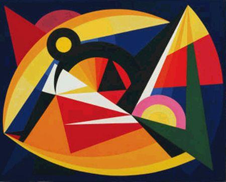 “Der französische Maler Auguste Herbin (1882–1960) gilt als ein Revolutionär der Moderne und einer der Begründer der Abstraktion in Frankreich. Kurz nach der Jahrhundertwende beginnt er mit spätimpressionistischen Landschaften, Stillleben und Porträts, schon jetzt in leuchtenden, dabei harmonisch gehandhabten Farben, die in der darauffolgenden fauvistischen Phase wild werden und es ein Leben lang bleiben. …In den späten 1930er Jahren beschäftigt er sich vermehrt mit Farbtheorien, vor allem mit anthroposophischen Adaptionen von Goethes Farbenlehre. Daraus entwickelt er 1942 sein “alphabet plastique”, ein Regelwerk der reinen Farbtöne und geometrischen Formen, Musiknoten und Buchstaben.” Text Lenbachhaus